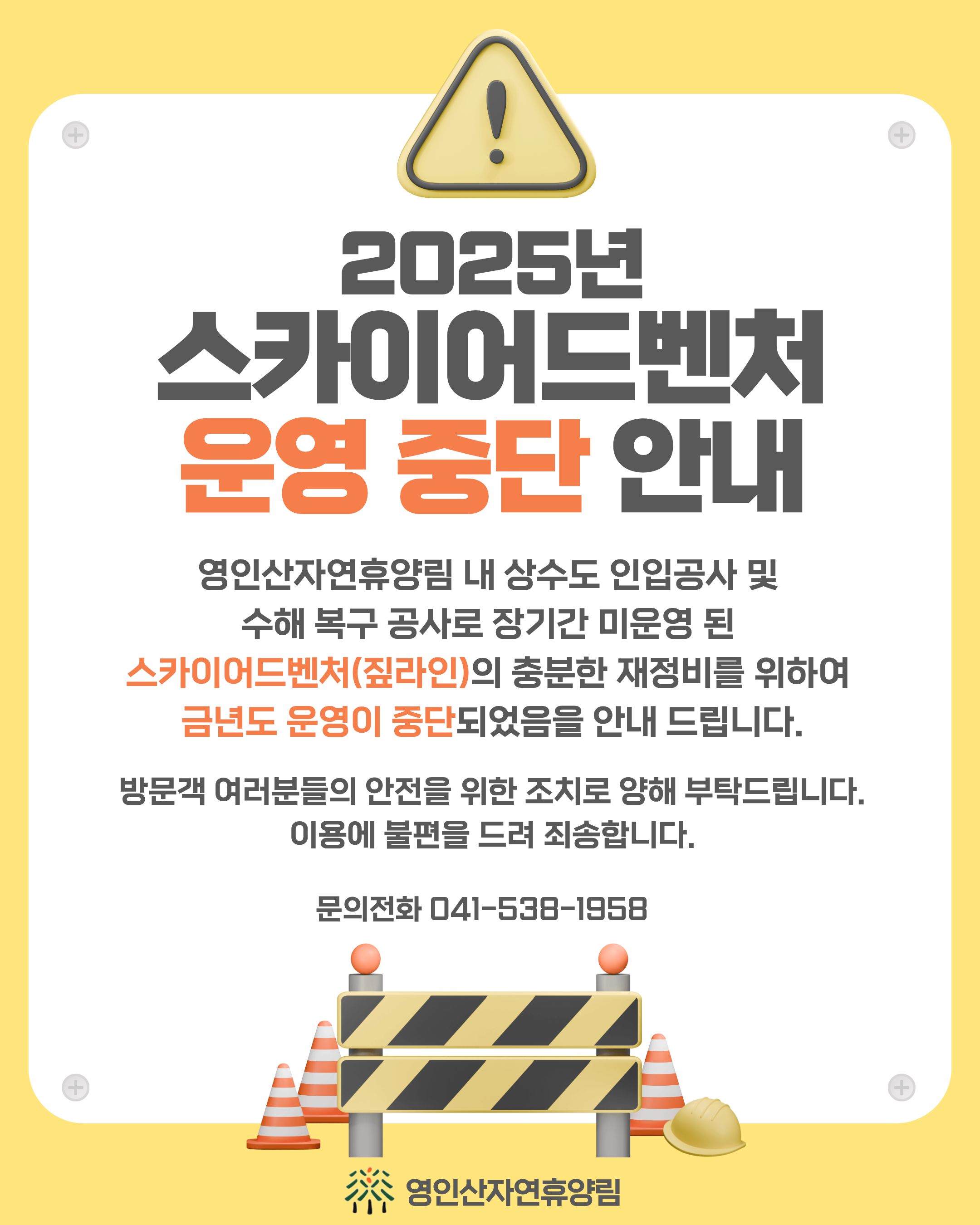 2025년 영인산자연휴양림 스카이어드벤처 운영 중단 안내